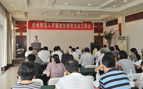 7月16日下午,光电所召开深入开展创先争优活动工作会。会议就贯彻落实深入开展创先争优活动作了部署,各党支部书记以及科研部门、机关职能处室相关负责人约50余人与会。