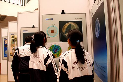 早上九点,在明媚的春光中,成都外国语学校领导率领众师生隆重举行了“科学文化传播系列展览”的启动仪式。