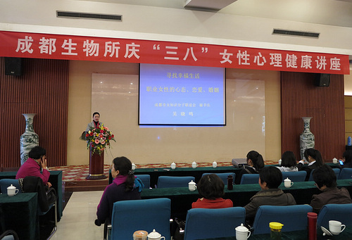 工会特别邀请了成都市女知识分子联谊会秘书长吴晓鸣作了题为《寻找幸福生活职业女性的心态、恋爱、婚姻》的心理健康讲座。吴晓鸣长期致力于女性心理研究,她深入浅出、循循善诱,用简洁生动的语言和例子讲述女性该如何做女孩、女人、妻子、母亲,赢得了在场女性朋友的共鸣和好评。讲座结束后,吴晓鸣秘书长与听众进行了互动,解答一些女职工和女学生在生活中遇到的困惑。