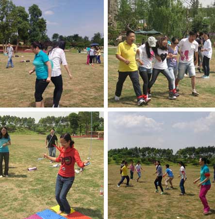 在第二阶段的趣味竞技活动中,青年职工分为两组进行对抗竞技。在背夹气球接力赛中,大家体会了默契合作才是致胜法宝,集体绑腿走需要团结一心、步调一致的合力,在指压板上跳绳考验的是大家无惧压力、勇往直前的魄力,最后的终极比赛撕名牌则体现了团队协作与思考。整个比赛进行的紧张有序,欢声笑语不断。
