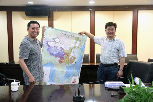 会后,李爱农主任还向朱庆教授赠送了成都山地所最新出版的竖版《中国数字山地图》。