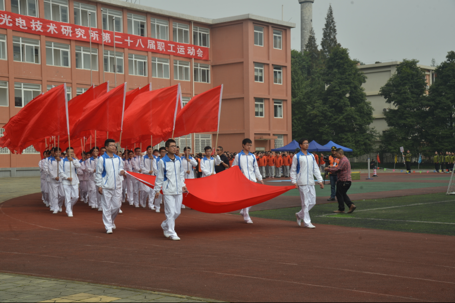 开幕式上方阵入场环节,由研究生组成的红旗方队护拥着国旗,迈着矫健的步伐走向运动场,展示了光电所开拓创新,勇往直前的精神风貌。紧接着,科研代表队、总公司代表队、所机关代表队喊着各自统一而响亮的口号依次经过主席台,体现着光电所严谨求实,团结奋进的工作作风。