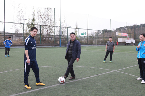 同在一片绿地,踢出青春色彩。12月22日,成都市美洲体育公园足球运动场上的加油声、喝彩声、掌声和欢笑声一阵高过一阵,成都山地所2016年“贺岁杯”足球赛正在火热进行。