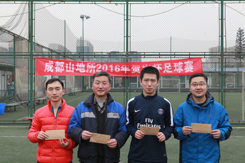 经过四场比赛的激烈角逐,管理支撑联队技高一筹,勇夺冠军,数字山地与山区发展、灾害、环境分列二三四名。本次比赛的金靴奖由管理支撑联队的肖健刚夺得。