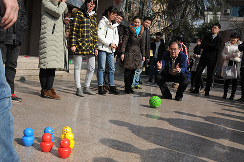 上午十点,各工会小组长、团委干部等工作人员就开始布置园区。拉横幅、挂彩旗、打气球、挂风车,在工作人员们精心布置下,整个园区充满了浓郁的新年气氛。下午两点,游园活动正式开始,精彩的游戏和丰厚的奖品吸引了全所职工和研究生们来到活动现场,定点投篮、套圈、瞎子敲锣、夹弹珠、趣味保龄球……,每个游戏活动点都排起了长龙。最受欢迎的游戏还是瞎子敲锣,无论是职工还是学生们都跃跃欲试,敲中的欢呼雀跃,没敲中的笑得前仰后合……人们的笑脸,与冬日的阳光交相辉映,构成了一幅最灿烂的新年图景。