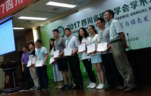 此次学术年会还通过会前自由申报、评选,首次颁发了2015-2016年度研究生优秀论文奖。成都生物所李月娇、王东、张子良等分别获得了“2017年四川省植物学会学术年会”优秀论文一、二、三等奖。