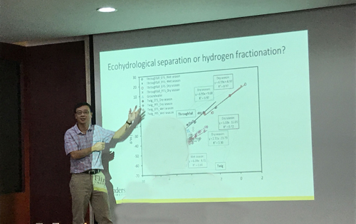 报告中,关华德研究员还同与会师生进行了积极互动,现场气氛热烈。关华德研究员的报告深入浅出,让在座师生对PCASOA模型及南澳干旱区生态水文试验研究有了较清晰的认识,拓展了知识视野。