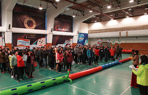 为喜迎2018年新春佳节的到来,进一步提升研究所的凝聚力,积极营造健康向上、和谐奋进的创新氛围,2月5日下午,成都山地所工会在四川省体育馆羽毛球馆组织了一场趣味与运动相结合、主题为“筑梦山地共创未来”的职工趣味运动会。现场一片欢声笑语、热闹非凡。运动会由本次比赛裁判长、纪委书记、工会副主席蔡长江主持。所长文安邦、党委书记兼工会主席罗晓梅出席并参与活动。