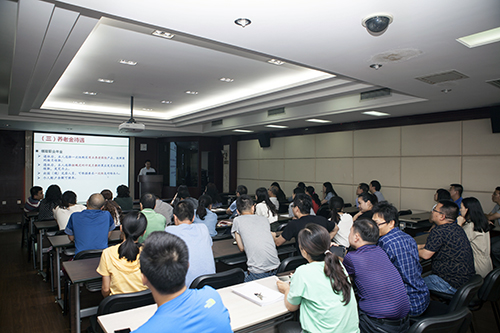 7月4日,成都山地所召开机关事业单位养老保险宣讲会。人事与人才处处长张金山主持会议并作出题宣讲。全所各部门职工80余人参加了会议。