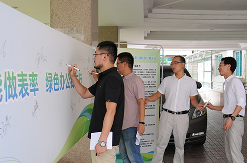 活动中,志愿者们向大家宣讲低碳环保知识,倡导大家节约每一度电,每一个纸杯,每一滴水,提倡绿色办公低碳生活,为行为节能、绿色办公研究所贡献自己的一份力量。