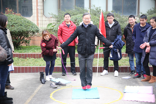 在喜气洋洋的气氛中,趣味活动开始了。本部趣味活动引用了破冰拓展趣味活动,现场报数分队进行了花样拔河等5个项目,挑战各种困难,增强团队凝聚力,在今后工作中树立互相配合、互相支持的团队意识。大邑园区趣味活动增加了才艺加分赛,涌现了一批文艺青年为自己团队拉分。公司三位领导积极参加才艺表演活动,为参赛队伍加分。在活动过程中还穿插着3次幸运抽奖,伴随着大家的期待将活动一次次推向高潮。