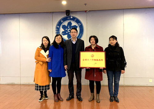 会上对获得全国五一巾帼标兵岗先进集体颁发奖牌。