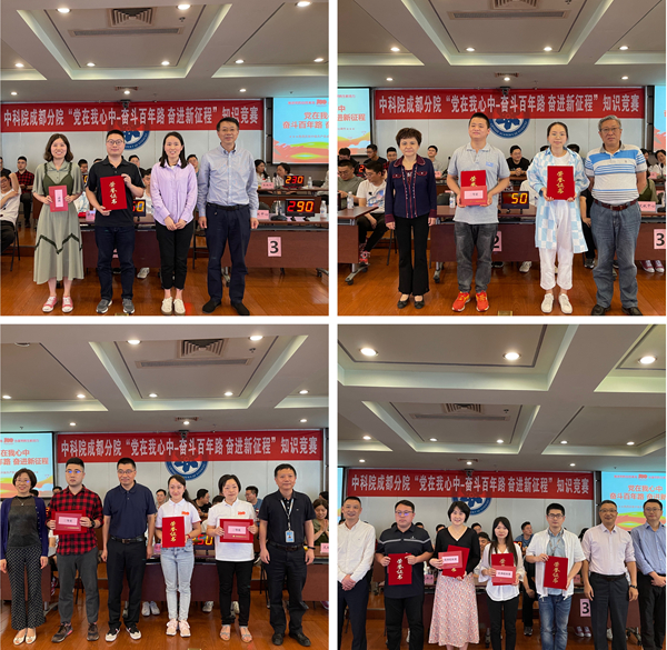 此次活动是成都分院庆祝建党100周年系列活动之一,来自院属成都、重庆地区各单位和国科大成都学院10支代表队参加了比赛。经过必答题、抢答题、风险题的激烈角逐,成都文献情报中心夺得第一名,光电所和成都分院机关并列第二名,成都山地所、重庆院、成都生物所获第三名,成都唯实公司、成都有机公司、中科信息公司和国科大成都学院获优秀组织奖。