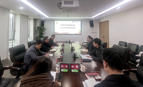 1月23日,成都分院分党组召开2025年度党员领导干部民主生活会,深入学习贯彻习近平新时代中国特色社会主义思想,全面落实党的二十届四中全会精神以及中央八项规定精神,以作风建设常态化长效化凝聚奋进力量,为“十五五”开好局、起好步筑牢政治保障。中国科学院督导组到会指导。会议由分党组书记王嘉图主持。
