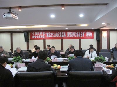 12月2日,中科院科技救灾专项“地震次生山地灾害监测预警及综合防治技术”项目验收会在成都山地所举行。项目验收专家组由成都理工大学黄润秋教授、四川大学艾南山教授、西南交通大学周德培教授、成都市国土局黄晓兰教授级高级工程师、中科院计财局潘锋研究员和中科院成都山地所邓伟研究员等六位专家组成。中科院计财局项目管理处金启宏处长、茹加副研究员,中科院资环局国土与遥感处翟金良副研究员,山地所副所长韦方强、所长助理文安邦及项目组主要成员等二十余人参加了会议。