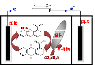 中国科学院成都生物研究所应用与环境微生物中心李大平研究员课题组在微生物燃料电池的产电机制研究方面取得突破性进展,他们从污染环境中分离出一株嗜碱性假单胞菌(Pseudomonas alcaliphila),该菌株在碱性条件下能够分解有机物的同时产生电能,最佳pH为9.5。通过研究发现,该菌株在MFC体系中代谢有机物的同时产生吩嗪-1-羧酸介体(phenazine-1-carboxylic acid,PCA),该介体起电子穿梭的作用从而实现电子从有机物到电极的传递过程。