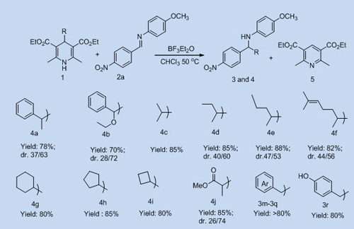 仿生合成即指在分子水平上模拟生物的功能,将生物的功能原理用于化学合成,借以改善现有的和创造崭新的化学原理和工艺的科学。仿生合成以其反应条件的温和化、无污染、立体专一性强、快速催化、副产物少、产率高、能耗低等突出特点和优势成为绿色化学的重要体现。仿生合成的核心内容是酶的利用和化学模拟。NAD(P)H(还原型烟酰胺腺嘌呤二核苷酸及其磷酸酯)是生命体内最重要的氧化还原辅酶之一,起着转移负氢离子或电子的作用。其化学模型都是二氢吡啶类化合物,其最为常用的三种模型化合物为:BNAH(1,苄基-1,4二氢烟酰胺)、HEH(1,4-二氢吡啶)、AcrH2(N-甲基-9,10-二氢吖啶)。其中HEH因其易于制备,毒性小,较稳定,便于储存,可以与许多有机催化剂兼容等特点常用于一些基团的选择性还原以及不对称氢化还原。