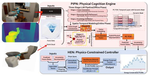 通过构建“感知–认知–决策”闭环体系,PIPHEN有效实现了低通信量下的高精度协同控制。实验结果表明,该框架可将协同决策延迟从315毫秒显著降低至76毫秒,同时显著提升任务成功率和系统稳定性。该研究为无人系统在复杂动态场景中的高效、可靠、可解释协作提供了全新技术路径。相关成果以“PIPHEN: Physical Interaction Prediction with Hamiltonian Energy Networks”为题被AAAI 2026录用并作口头报告(论文作者:陈可为,龙垭宇,尚明生)。