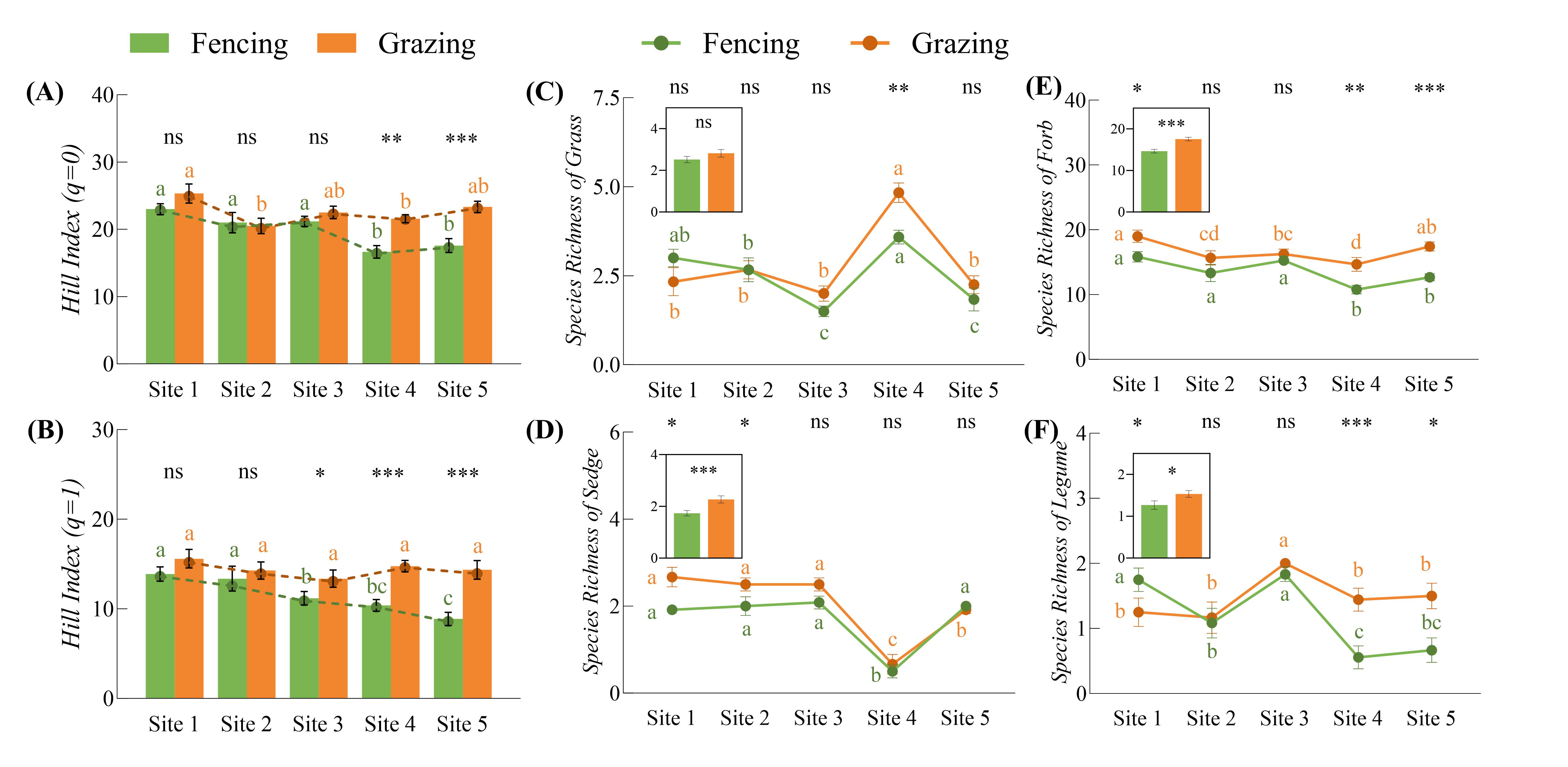 图1:长期围栏封育和放牧对高寒草甸植物多样性的影响