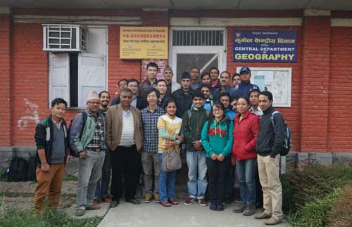 在中科院重点部署项目“南亚国家资源环境科学数据库建设”和对外合作重点项目“中尼典型山地生态系统遥感监测对比研究”的联合支持下,应尼泊尔特里布文大学地理系主任Poudel教授的邀请,中科院成都山地所委派宋孟强、赵伟、张建强、张继飞一行4人于11月18日至19日赴特里布文大学举办了山地遥感与地理信息系统专业技术培训讲座,共有30余名特里布文大学师生参加了此次培训。