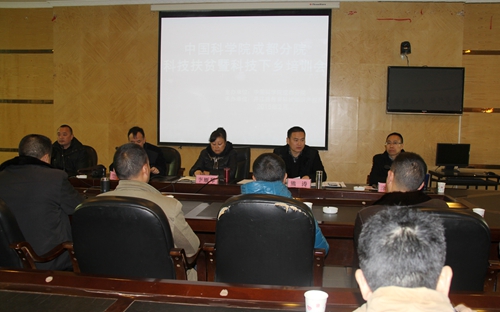2月10日至11日,成都分院高级业务主管李雁琴、成都生物所涂升斌副研究员、高级农艺师朱再书一行赴对口帮扶县开江,在甘棠镇开展成都生物所最新育成的优质高产杂交水稻新品种“科优1599”育种、栽培技术培训活动。培训会由开江县科教局党组书记熊涛主持。