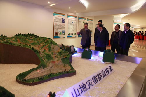 会前,胡江辉一行在邓伟、崔鹏的陪同下参观了山地所科技展馆。