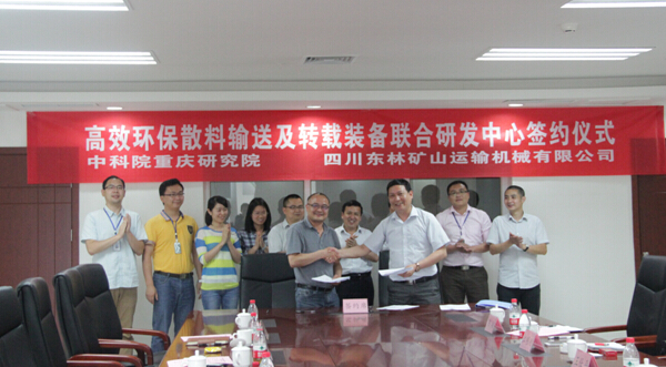 重庆研究院与东林矿山公司通过充分交流,达成合作意向,建立高效环保散料输送及转载装备联合研发中心。随后双方举行了联合研发中心签约仪式。