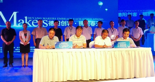 6月26日,由德阳市政府、四川省科技厅、中科院成都分院主办,德阳市科知局、德阳市教育局、德阳市质监局等共同承办的“德阳创客·拥抱春天”主题活动在德阳举行。科技部高新司副司长曹国英,四川省科技厅副巡视员胡秀成,成都分院党组书记、常务副院长王学定,党组副书记王嘉图,德阳市委副书记、代市长赵辉,副市长钱书模,四川工程职业技术学院书记司徒渝,院长李登万出席活动。