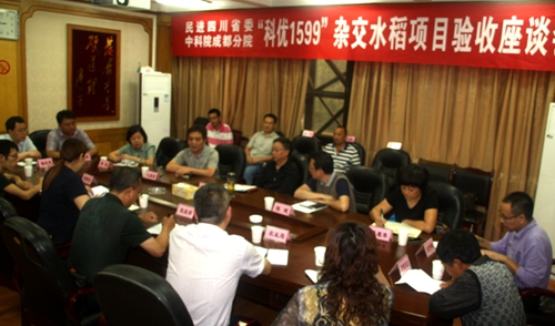 “科优1599”的项目负责人成都生物所副研究员涂升斌简要介绍了项目从选点、方案、培训、播种、插秧、移栽、防虫、分蘖、抽穗、成熟等十个方面的过程管理和有关情况。
