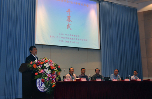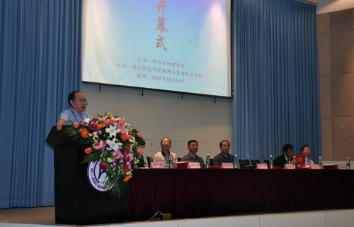 四川省地理学会2015年学术年会于10月15-18日在四川省内江市召开。来自中国科学院水利部成都山地灾害与环境研究所、内江师范学院、西华师范大学、四川大学、四川省教科所、四川师范大学、乐山师范学院、绵阳师范学院、成都师范学院、西昌学院等20余家科研院所、高等院校和基础教育系统单位共100余名代表参加了会议。此次会议由四川省地理学会主办,内江师范学院地理与资源科学学院承办。
