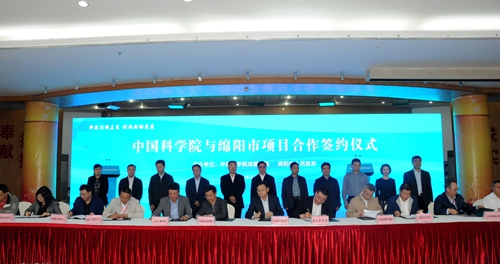 4月19日,中国科学院与绵阳市项目合作签约仪式在绵阳举行。会上签约15个项目,签约金额达24亿元。绵阳市委书记彭宇行,中科院成都分院分党组书记、常务副院长王学定,中科院成都分院分党组副书记王嘉图,绵阳市委常委、科技城党工委副书记颜超,绵阳市副市长孙福全,四川省科技厅副巡视员罗春彦等领导见证签约。